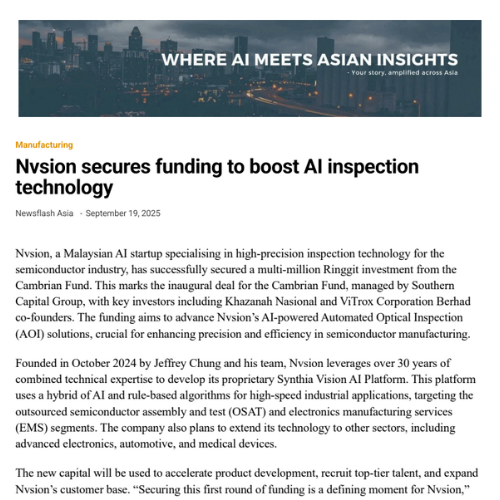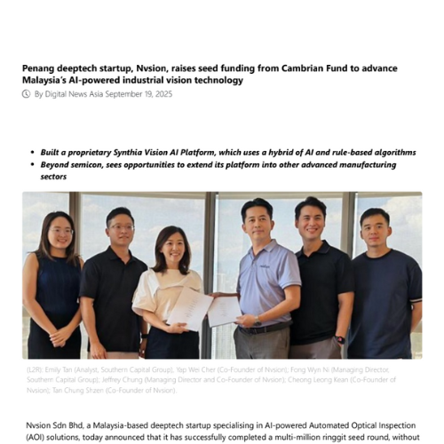 Penang deeptech startup, Nvsion, raises first funding round from Cambrian Fund to advance Malaysia’s AI-powered industrial vision technology _ Digital News Asia
